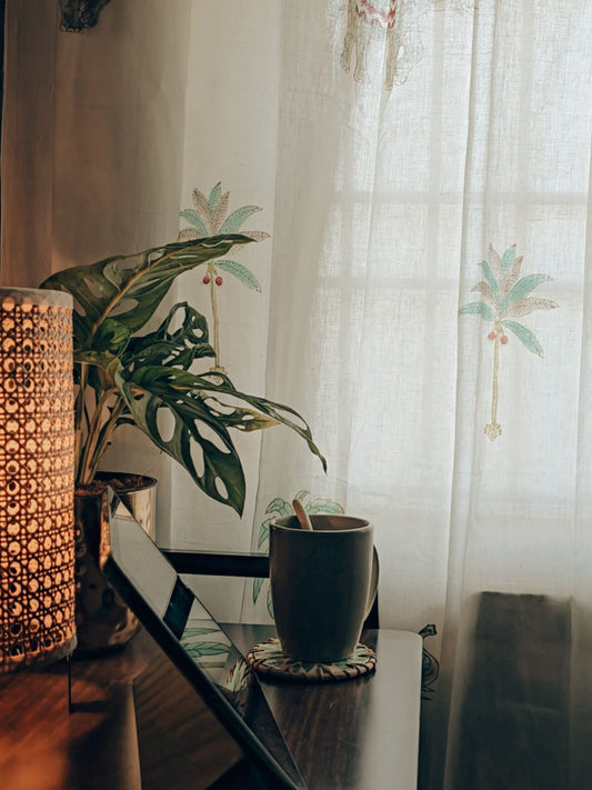 Green Elephant Palm Handblock Curtains