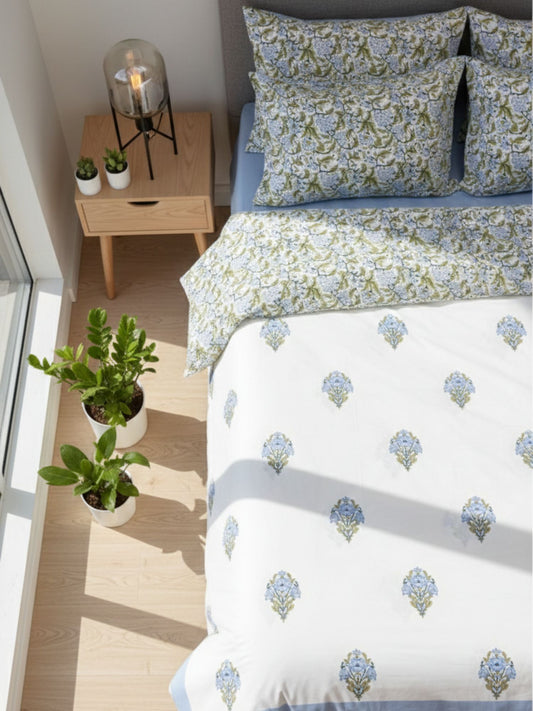Trisha Hand Block Printed King Bedsheet with Reversible Pillow Covers (90 x 108 inches)
