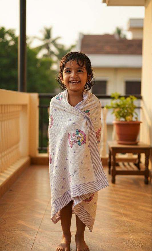 Hand Block Printed Kids Unicorn Bath Towel – Soft & Quick-Drying