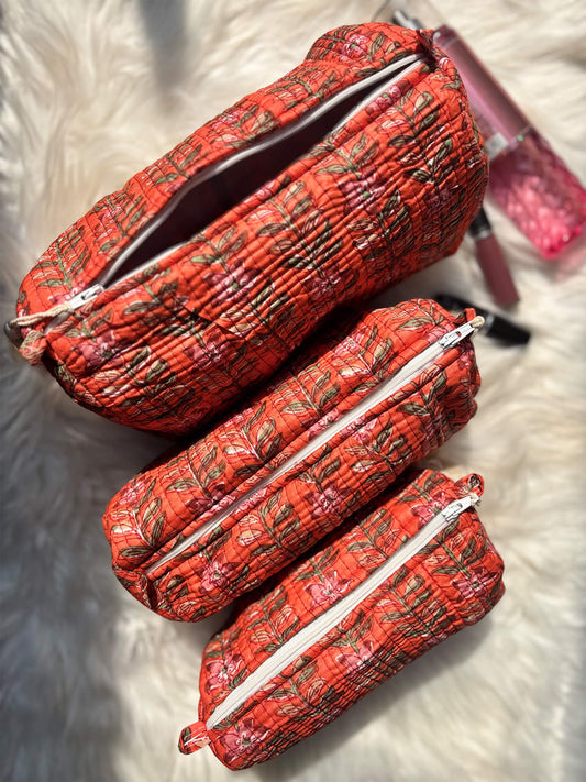 Hand Block Printed Quilted Multiutility Pouch Set – Pack of 3