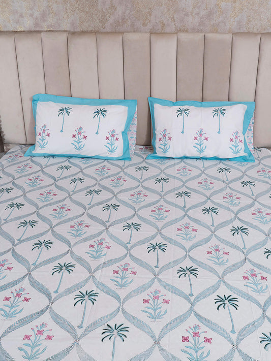Neel Bagh Collection - Hand Block Printed King Bedsheet with Reversible Pillow Covers (90 x 108 inches)