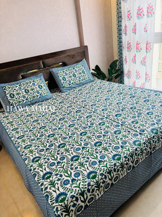 Shikar Bagh Collection - Matching Double Bed Quilt & Bedsheet Set