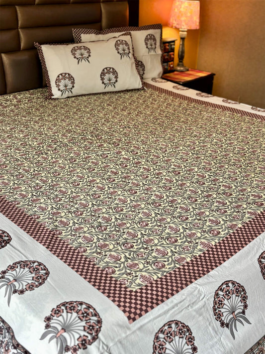 Anar Bagh Collection - Hand Block Printed Super King Bedsheet with Reversible Pillow Covers (108 x 108 inches)