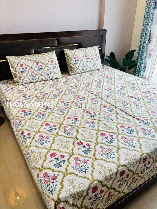 Handcrafted Quilted Cotton Bedcover with Two Pillow Covers