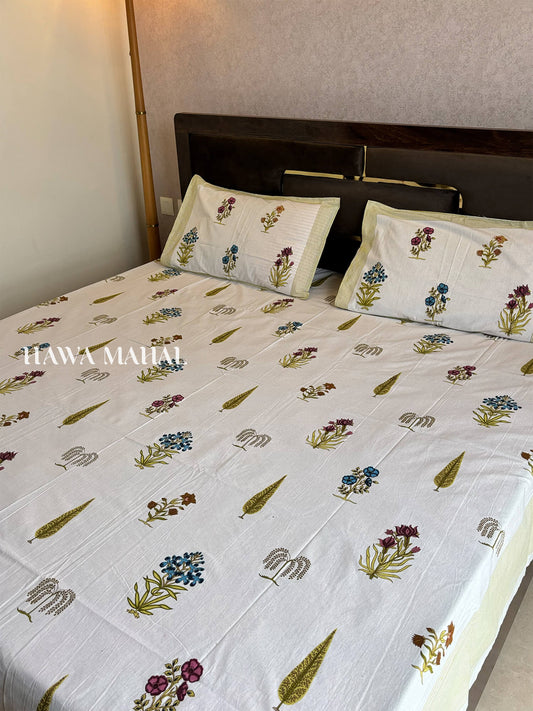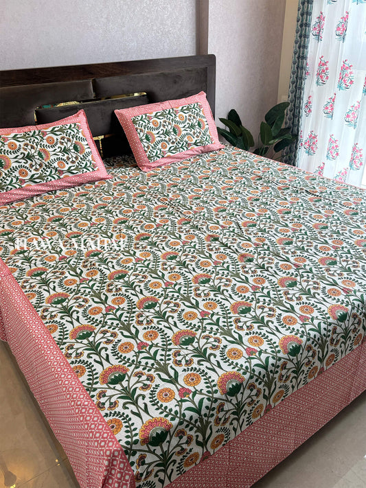 Gulnaar Hand Block Printed King Bedsheet with Reversible Pillow Covers (90 x 108 inches)