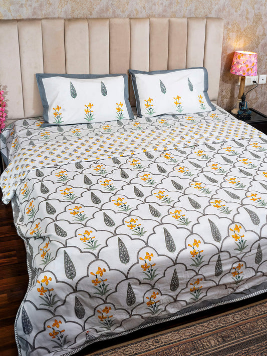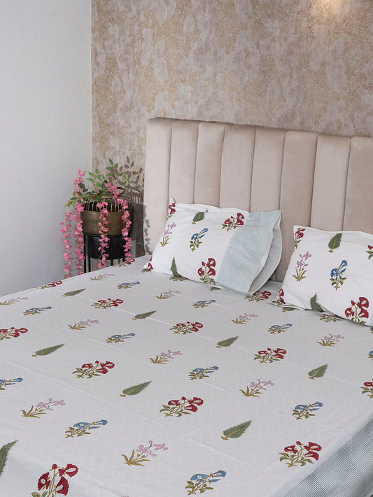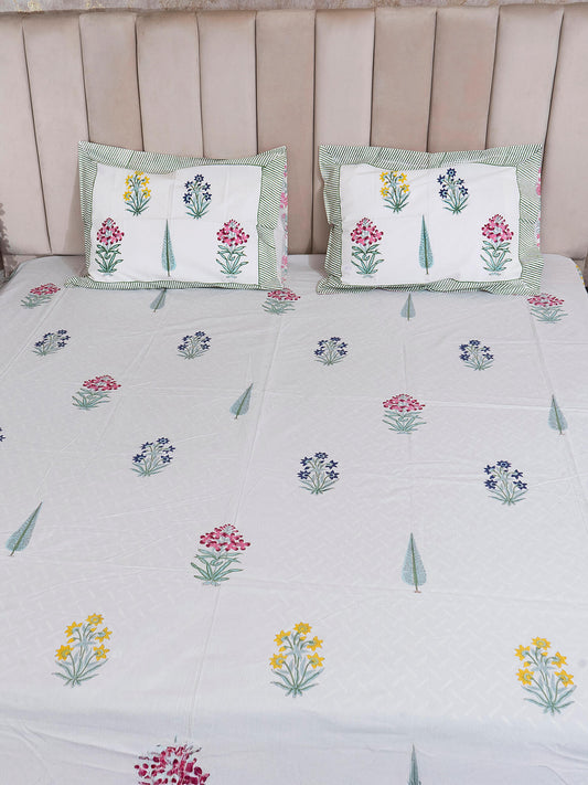 Phool Bagh Collection - Hand Block Printed King Bedsheet with Reversible Pillow Covers (90 x 108 inches)