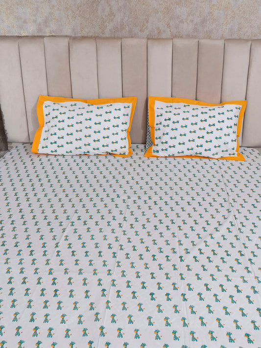 Sajjan Bagh Collection - Hand Block Printed Super King Bedsheet with Reversible Pillow Covers (108 x 108 inches)