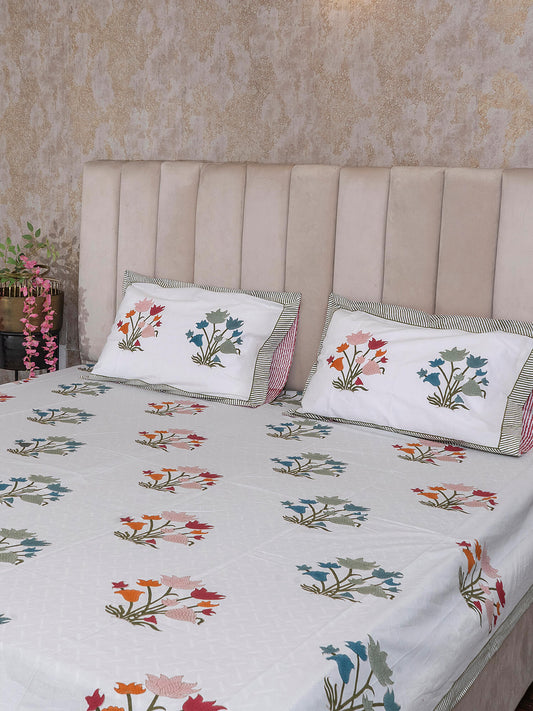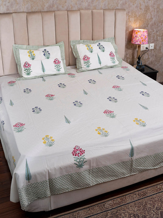 Panch Bagh Collection - Hand Block Printed King Bedsheet with Reversible Pillow Covers (90 x 108 inches)