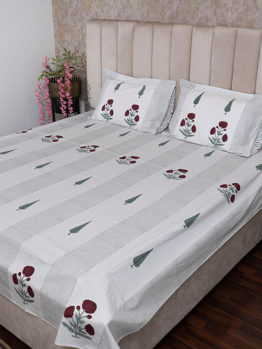 Meera Bagh Collection - Hand Block Printed King Bedsheet with Reversible Pillow Covers (90 x 108 inches)