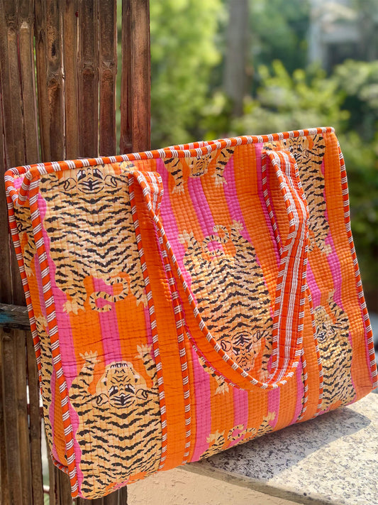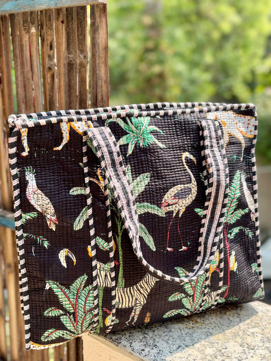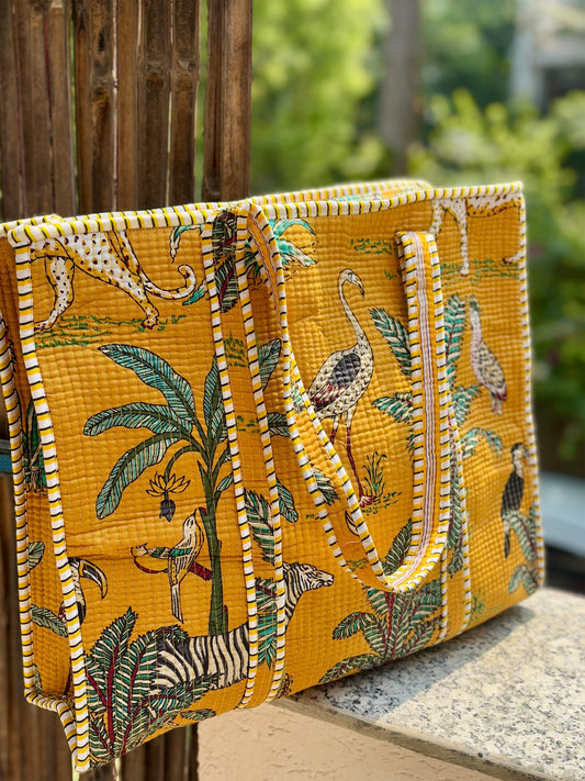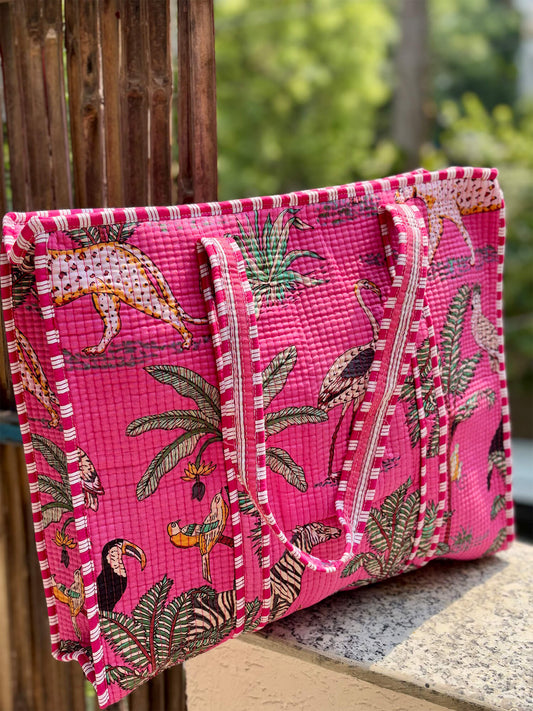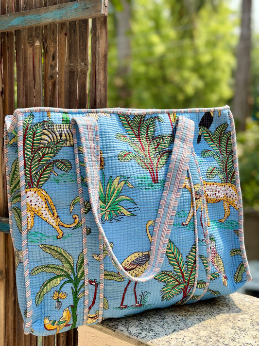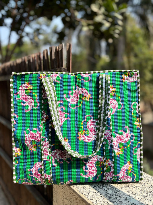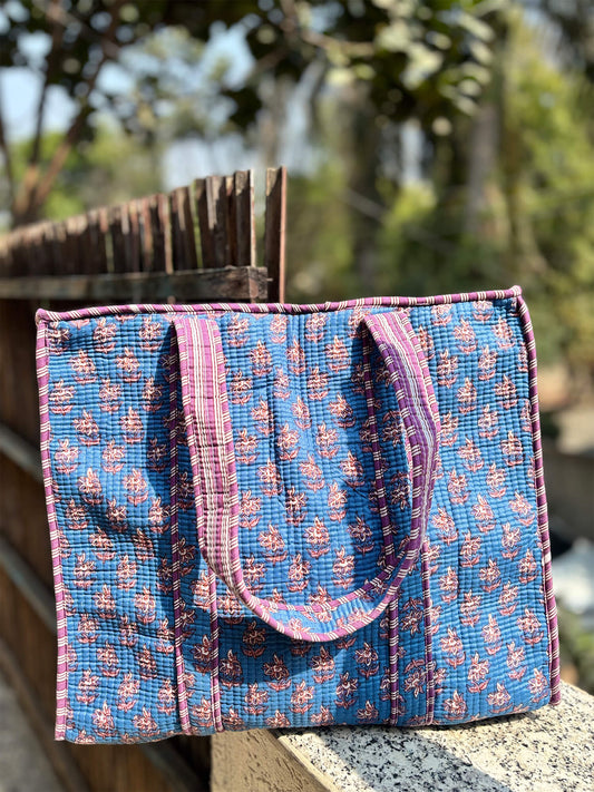 Gulmohar Bagh Collection - Handcrafted Quilted Cotton Bedcover with Two Pillow Covers
