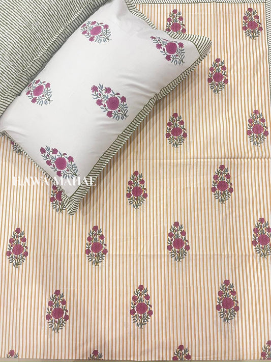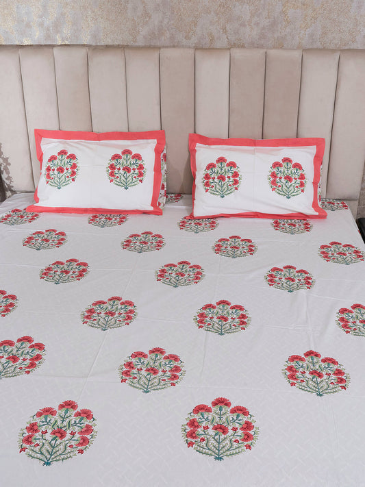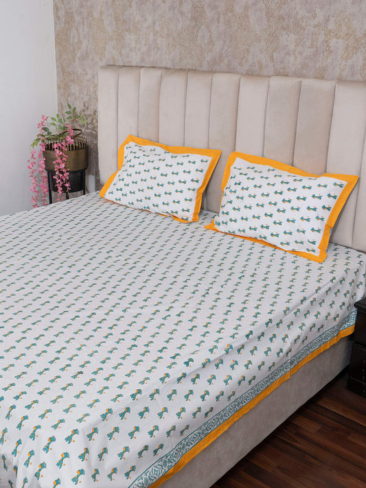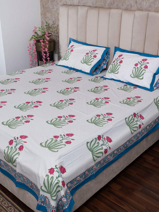 Gulnaar Hand Block Printed King Bedsheet with Reversible Pillow Covers (90 x 108 inches)