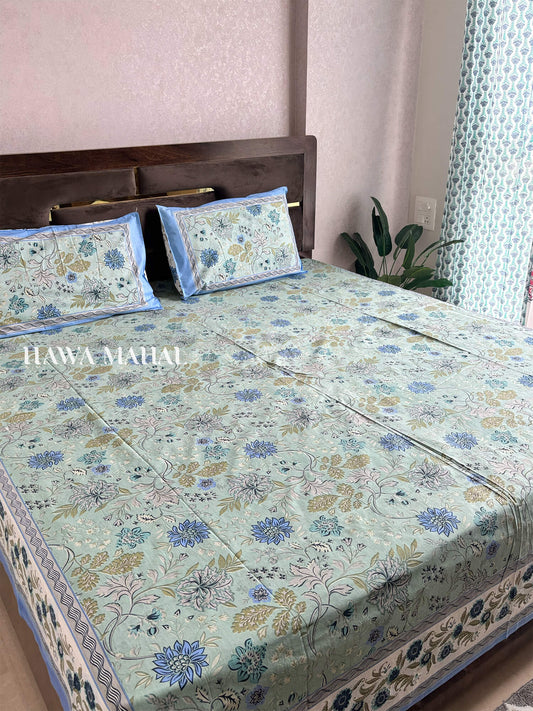 Panch Bagh Collection - Hand Block Printed King Bedsheet with Reversible Pillow Covers (90 x 108 inches)