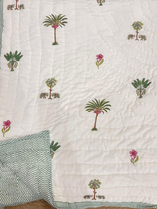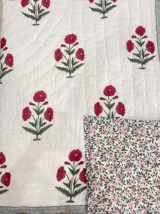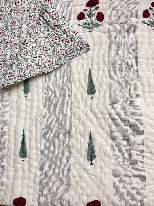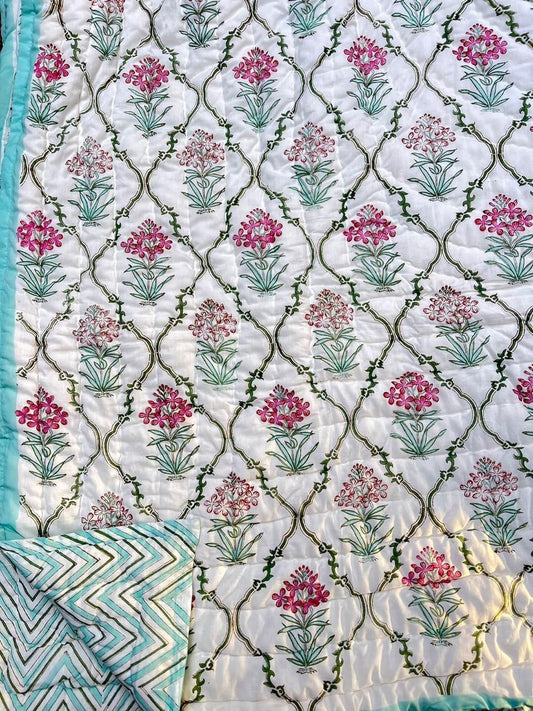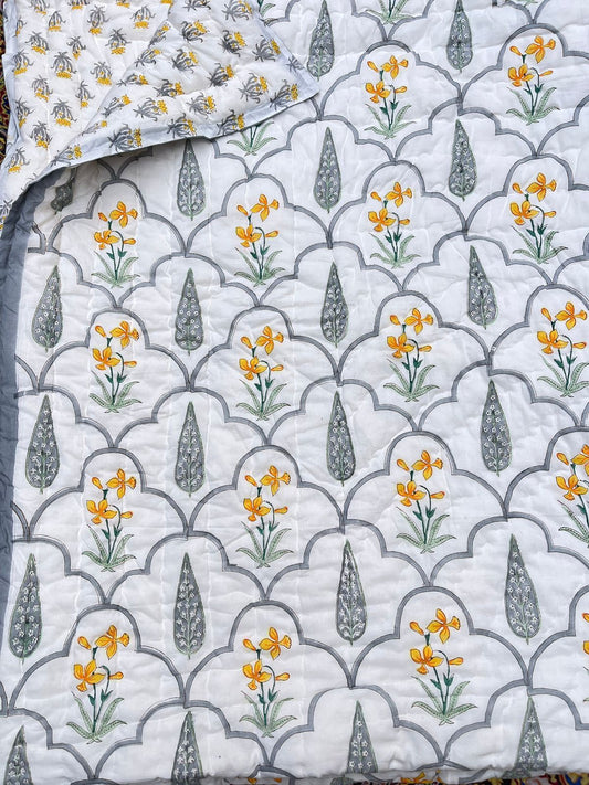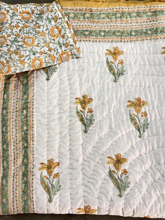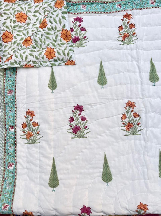 Mughal Bagh Collection - Matching Double Bed Quilt & Bedsheet Set