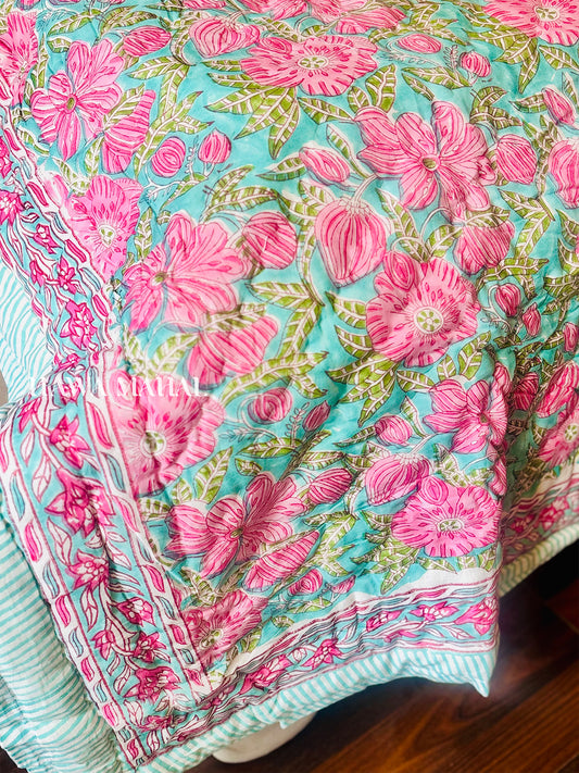 Champa Bagh Collection - Handblock Printed Reversible Mulmul Cotton Quilt - Single (60 x 90 inch)