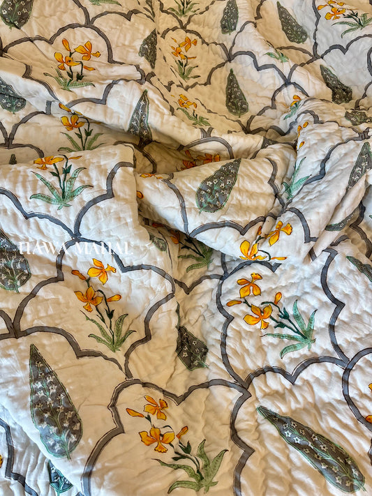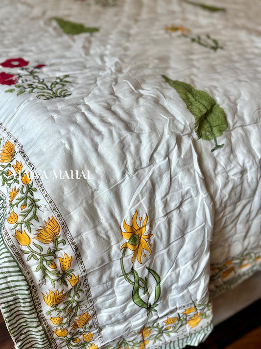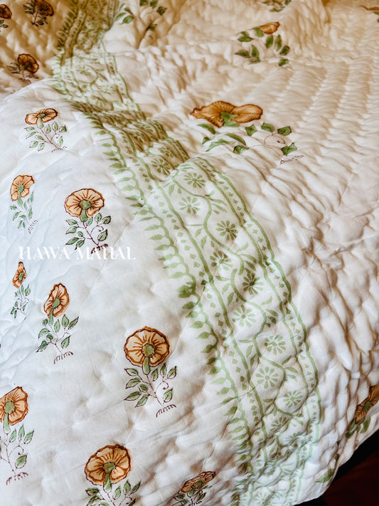 Sultan Bagh Collection -Handblock Printed Reversible Mulmul Cotton Quilt - Single (60 x 90 inch)