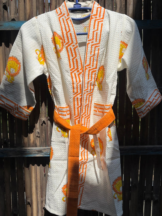 Hand Block Printed Kids Waffle Cotton Bathrobe - Simba