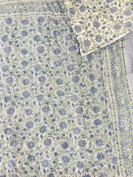 Floral Jaipuri Quilt- Handblock Printed Reversible Mulmul Cotton Quilt - Double (90 x 108 inch)