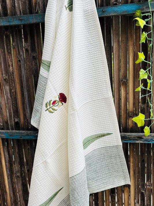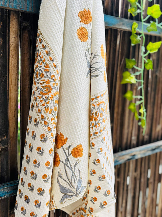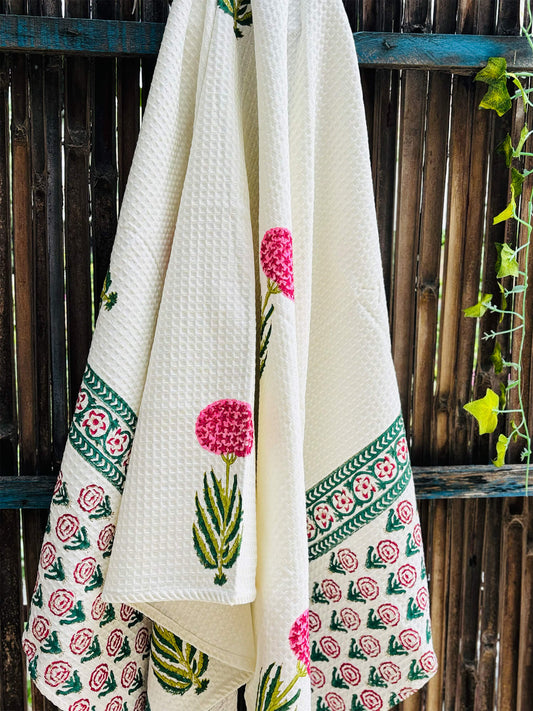 Handblock Waffle Bath Towel – Quick Dry & Ultra Soft