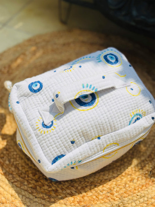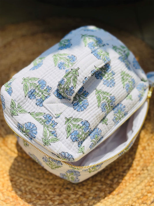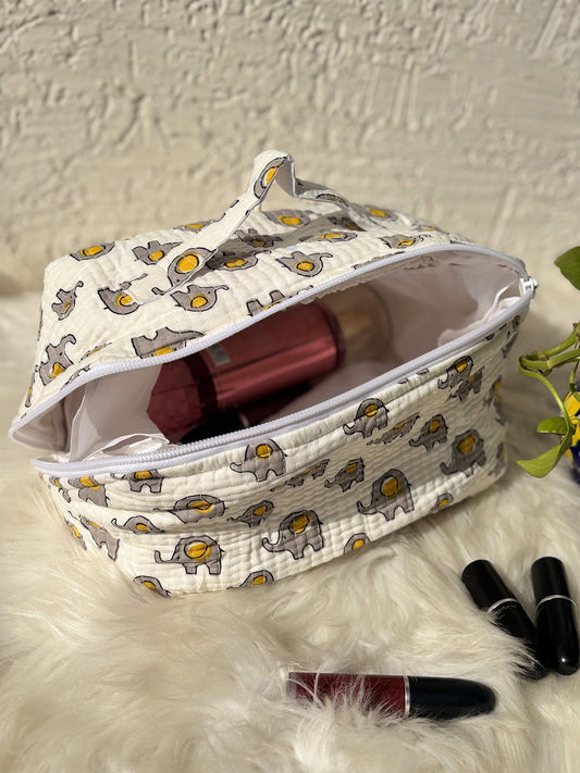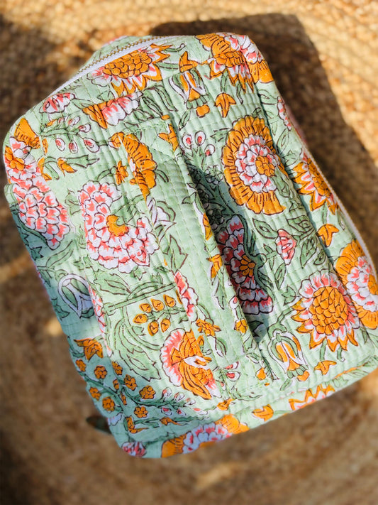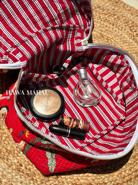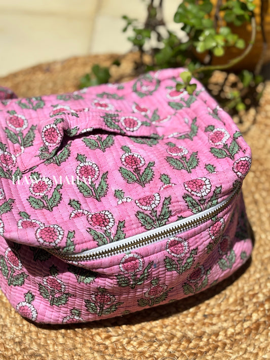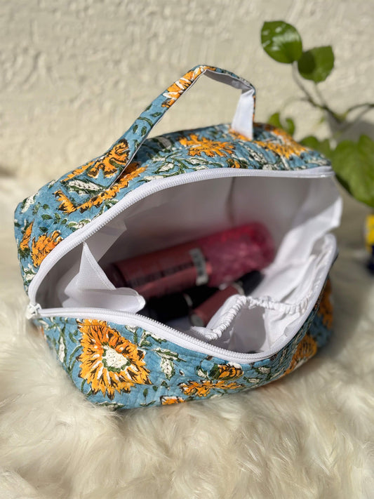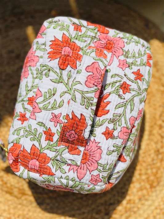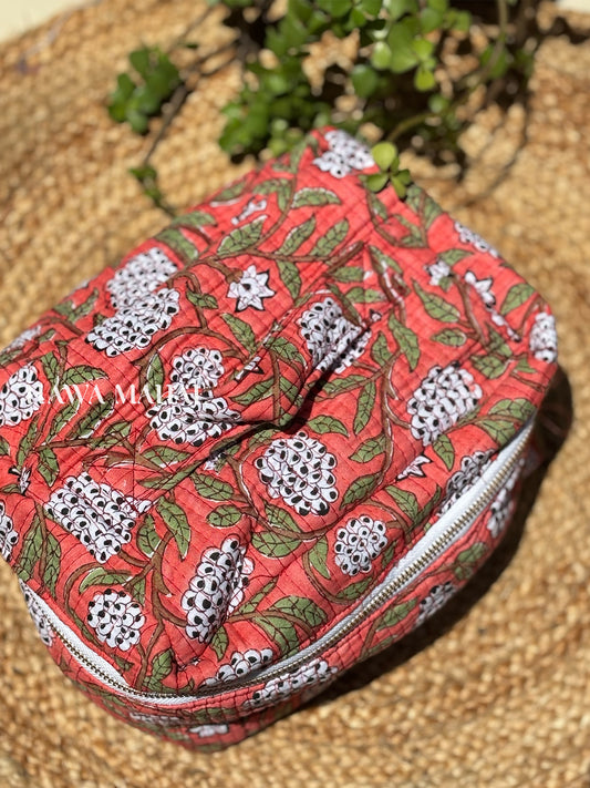 Handblock Quilted Vanity Bag – Travel-Friendly Organizer