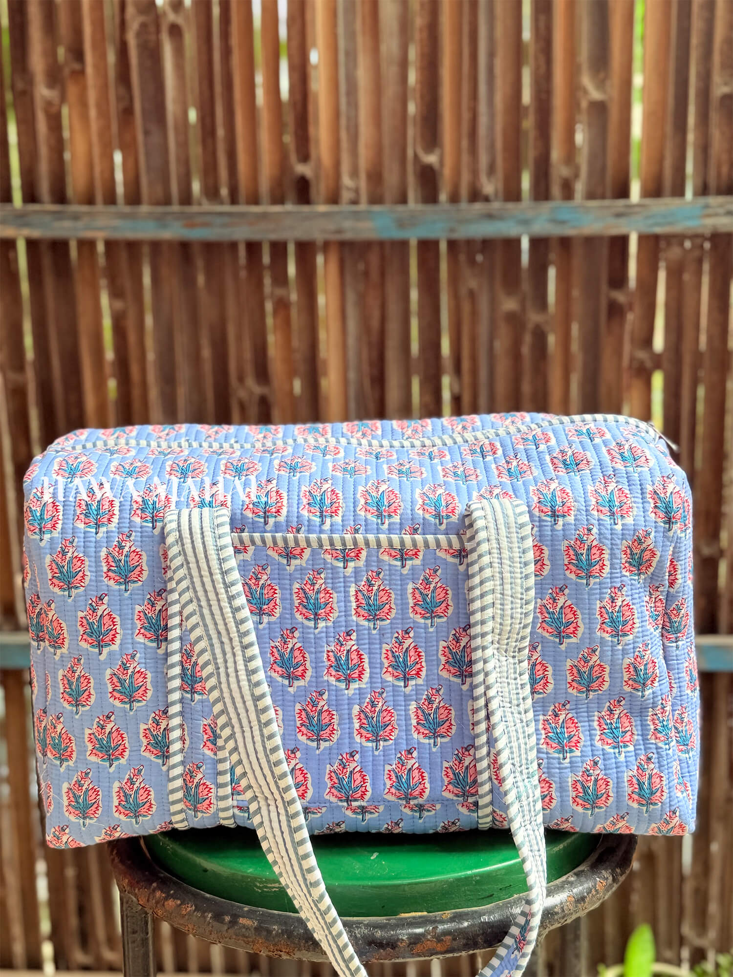 This versatile duffle bag combines traditional block print aesthetics with modern functionality. Crafted from washable, sustainable materials, it features sturdy dual handles, a reliable zipper closure, and a convenient inner pocket for organizing essentials. Whether you're heading to the gym, planning a weekend getaway, or managing daily shopping trips, this reusable companion adapts to your lifestyle while reducing environmental impact.