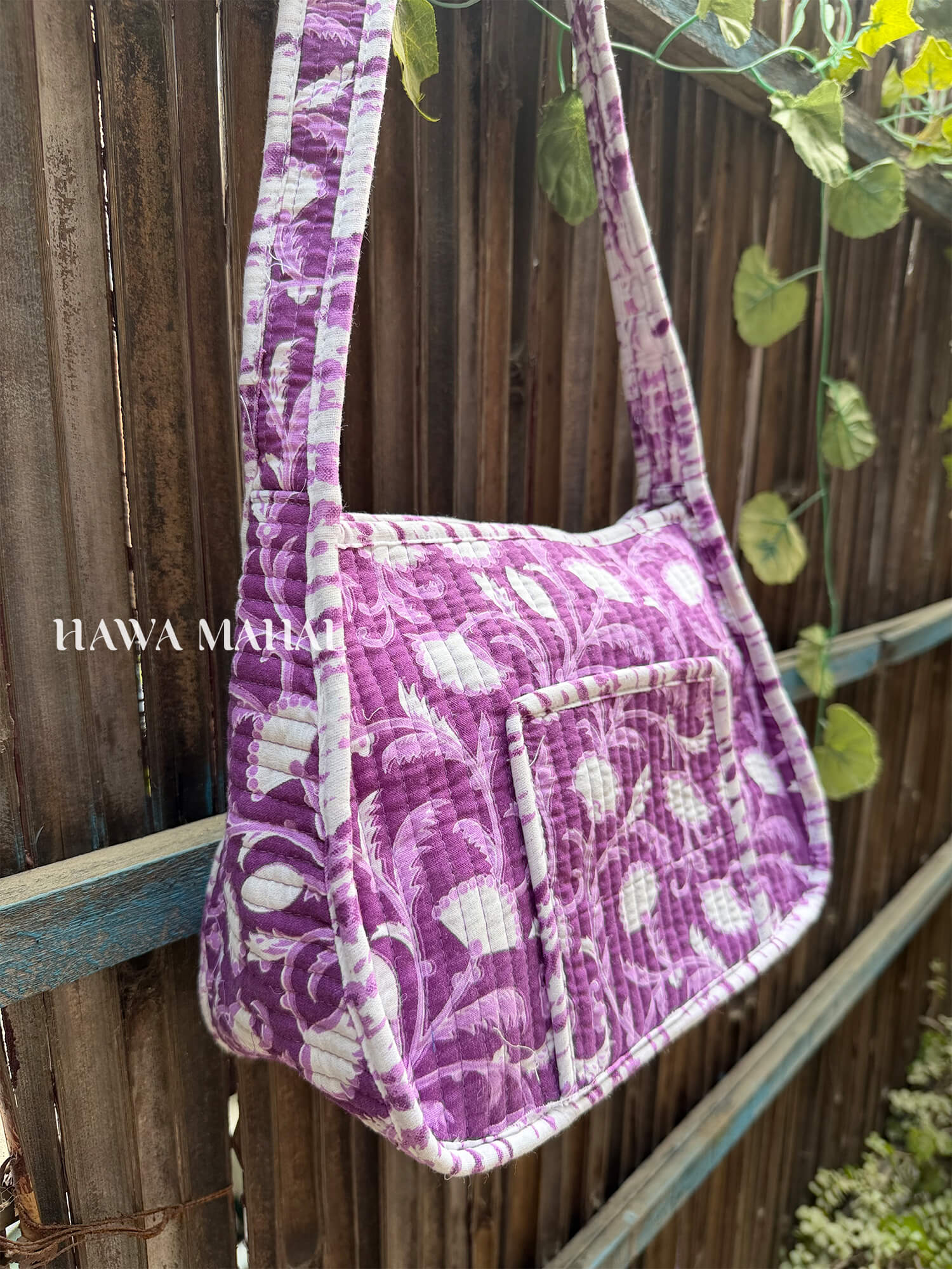 Crafted with traditional block print artistry, this lightweight sling bag seamlessly transitions from travel companion to everyday essential. The durable, washable fabric ensures longevity while maintaining its vibrant purple aesthetic. Designed as a reusable alternative to disposable bags, its crossbody configuration distributes weight evenly for comfortable wear during shopping excursions or leisurely walks. The secure zipper closure protects your belongings, while the compact silhouette makes it ideal for minimalist travelers and conscious consumers alike.