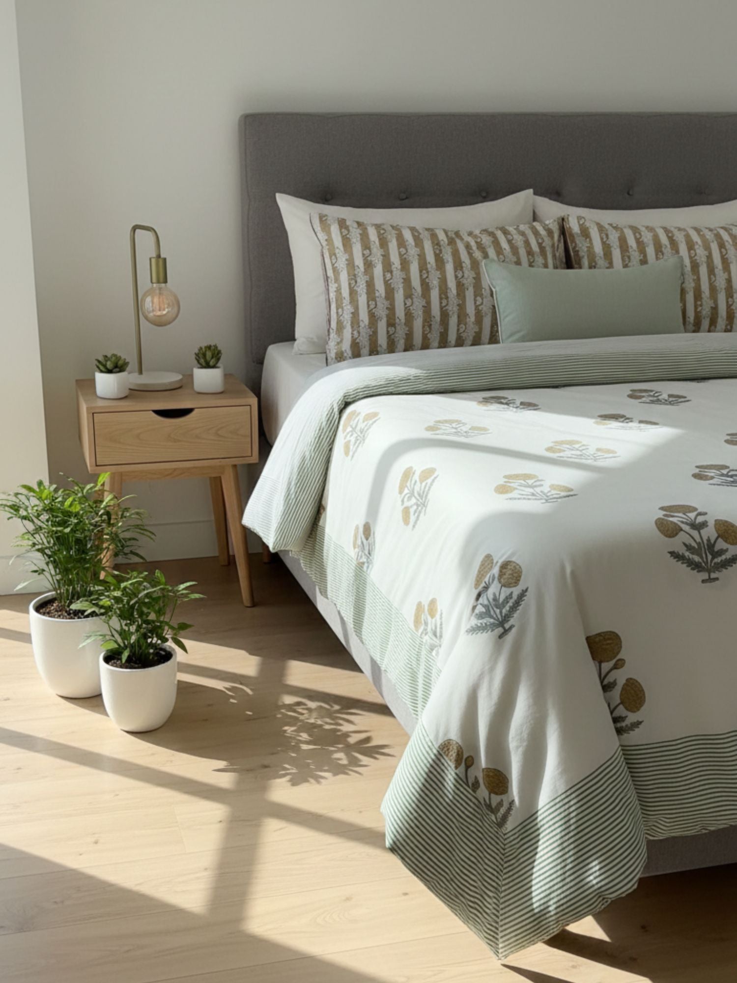 Bhoomi Hand Block Printed King Bedsheet with Reversible Pillow Covers (90 x 108 inches)