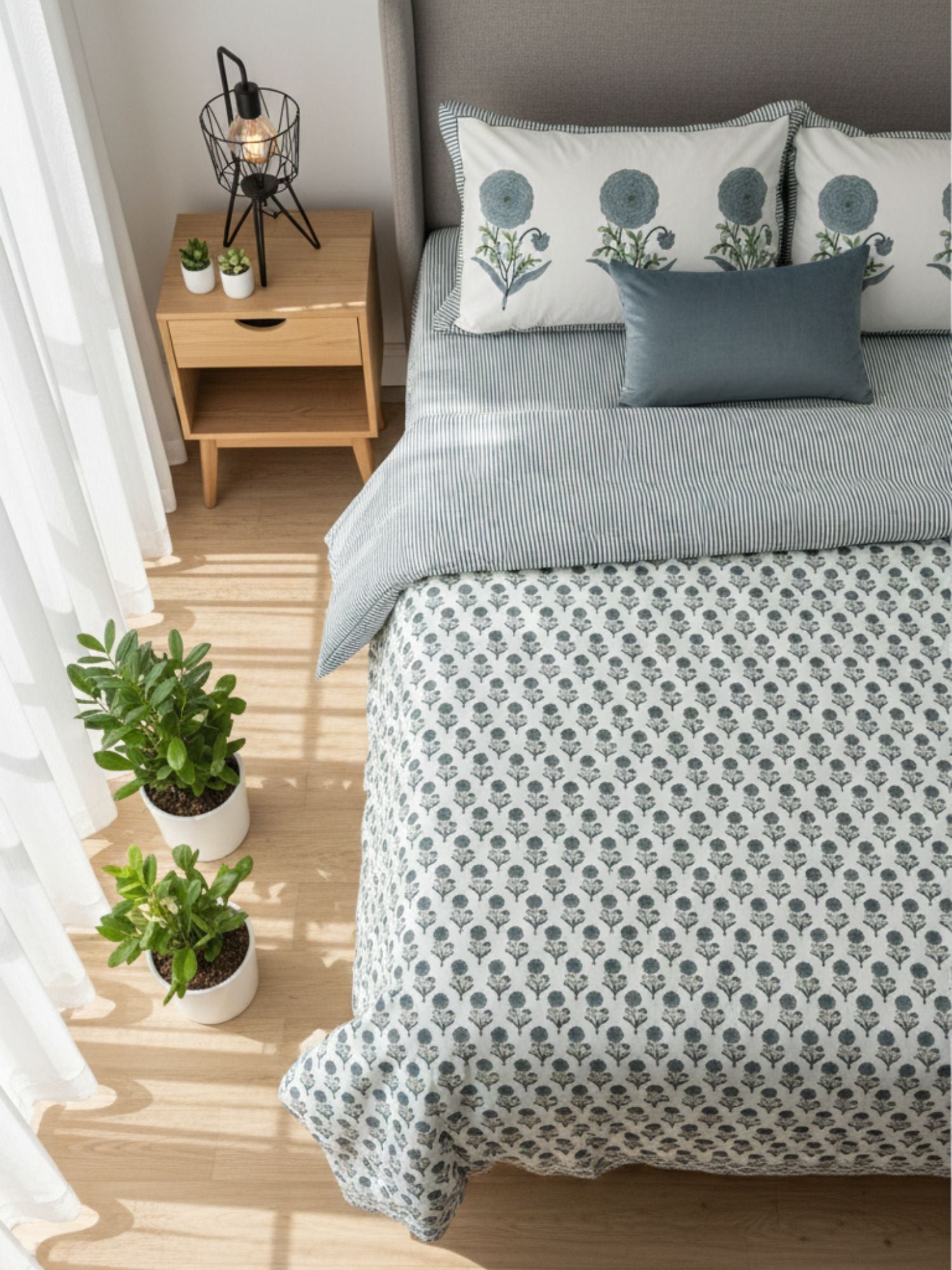 Booti Bagh Hand Block Printed King Bedsheet with Reversible Pillow Covers (90 x 108 inches)