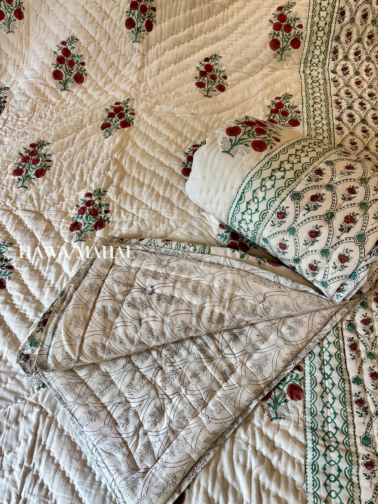 Anar Bagh Collection - Handcrafted Quilted Cotton Bedcover with Two Pillow Covers