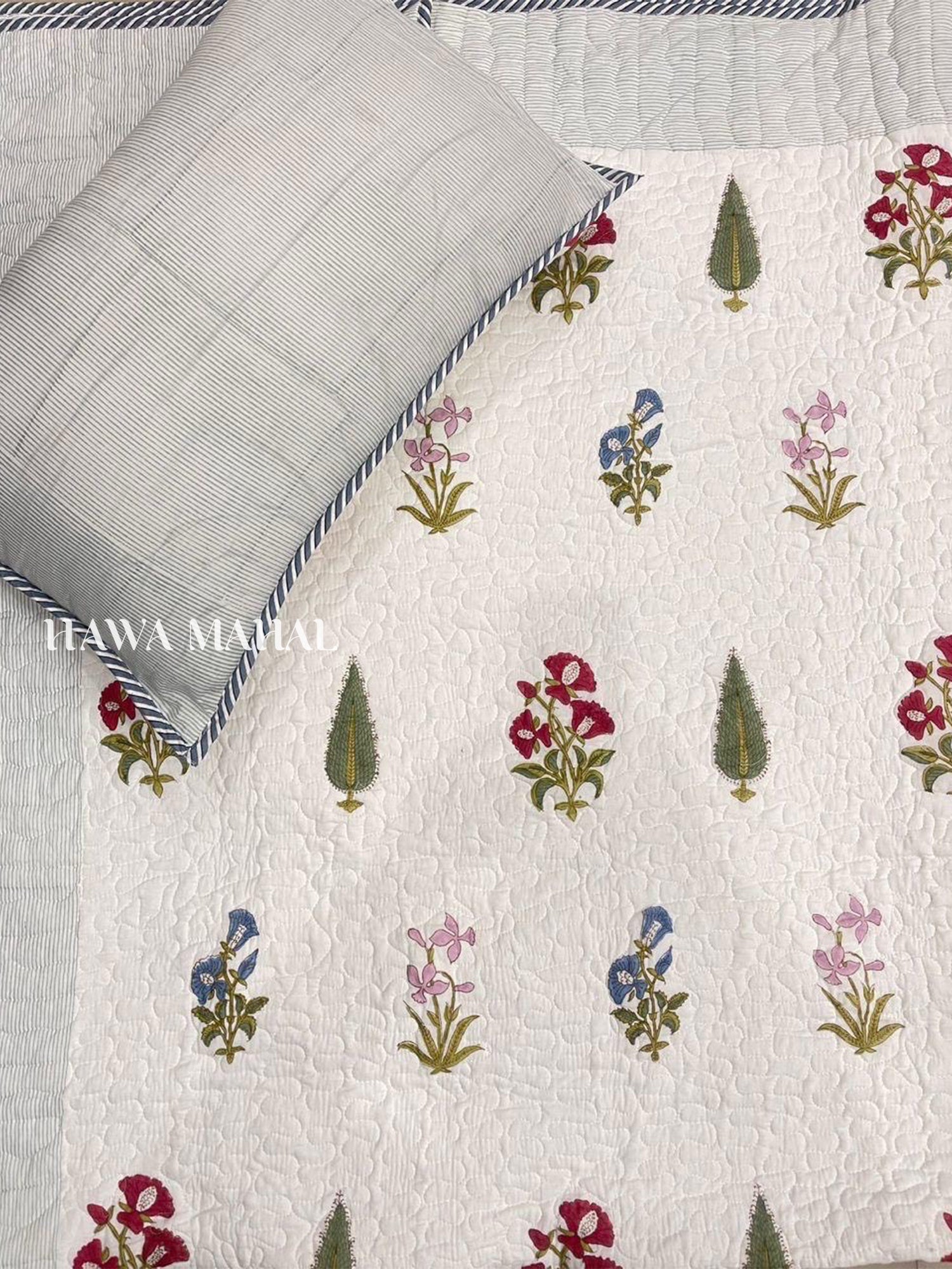 Rang Bagh Collection - Handcrafted Quilted Cotton Bedcover with Two Pillow Covers