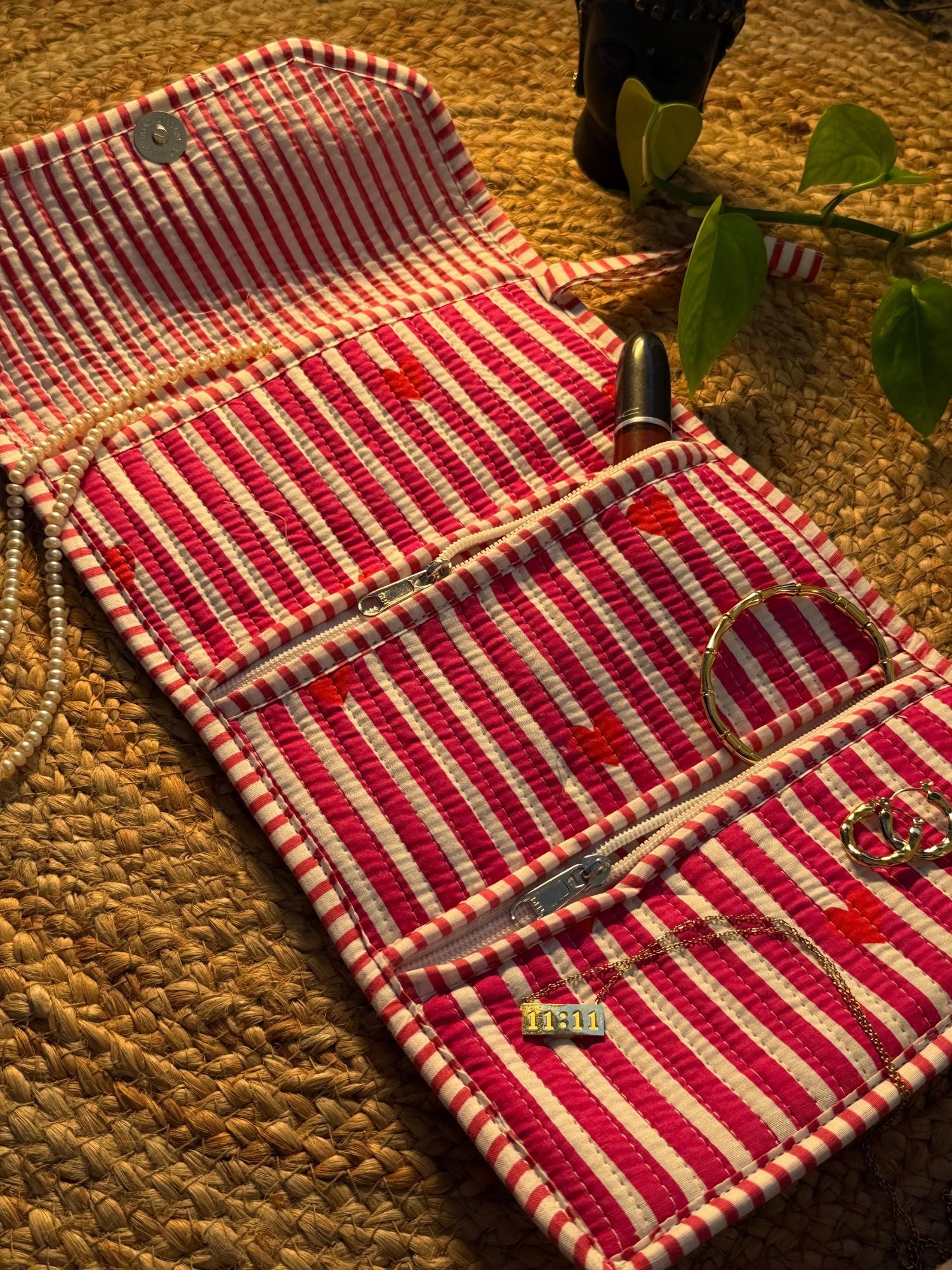 Jewellery Roll Up Pouch - Pink
