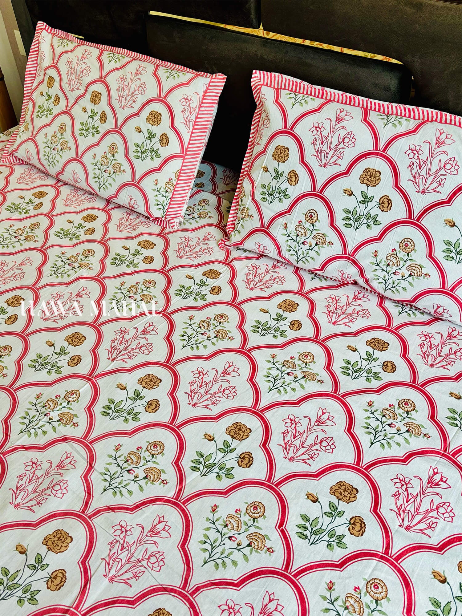Rang Bagh Collection - Handcrafted Quilted Cotton Bedcover with Two Pillow Covers