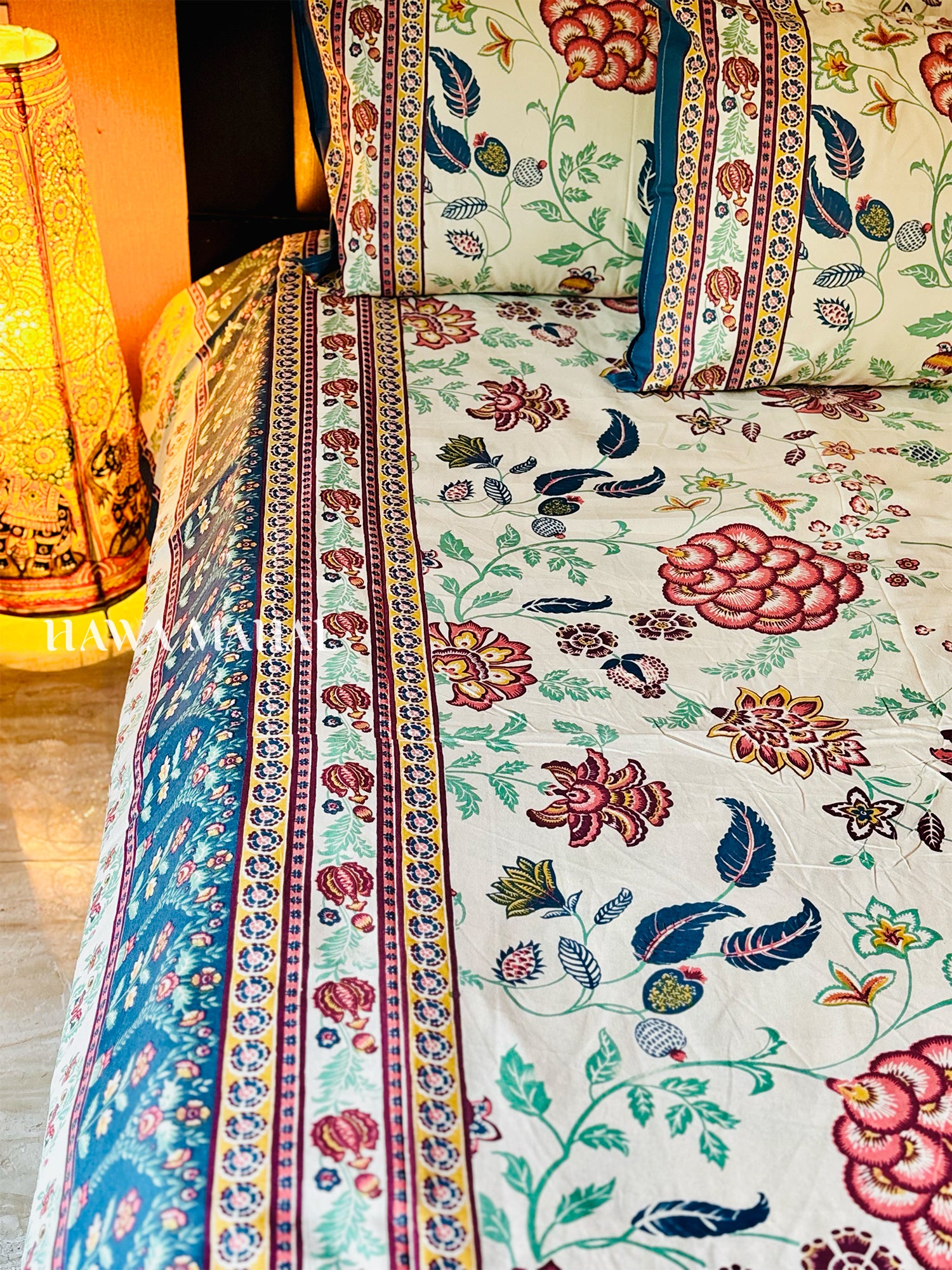 Customization: Fitted bedsheets are available based on mattress size. Connect on WhatsApp at +91 8860499690 for assistance.