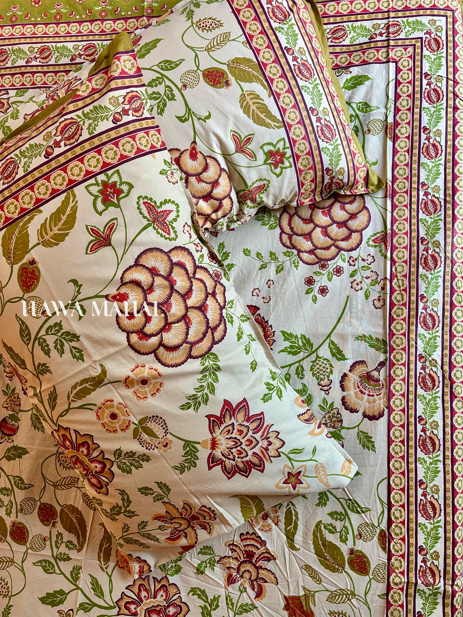 Rang Bagh Collection - Handcrafted Quilted Cotton Bedcover with Two Pillow Covers